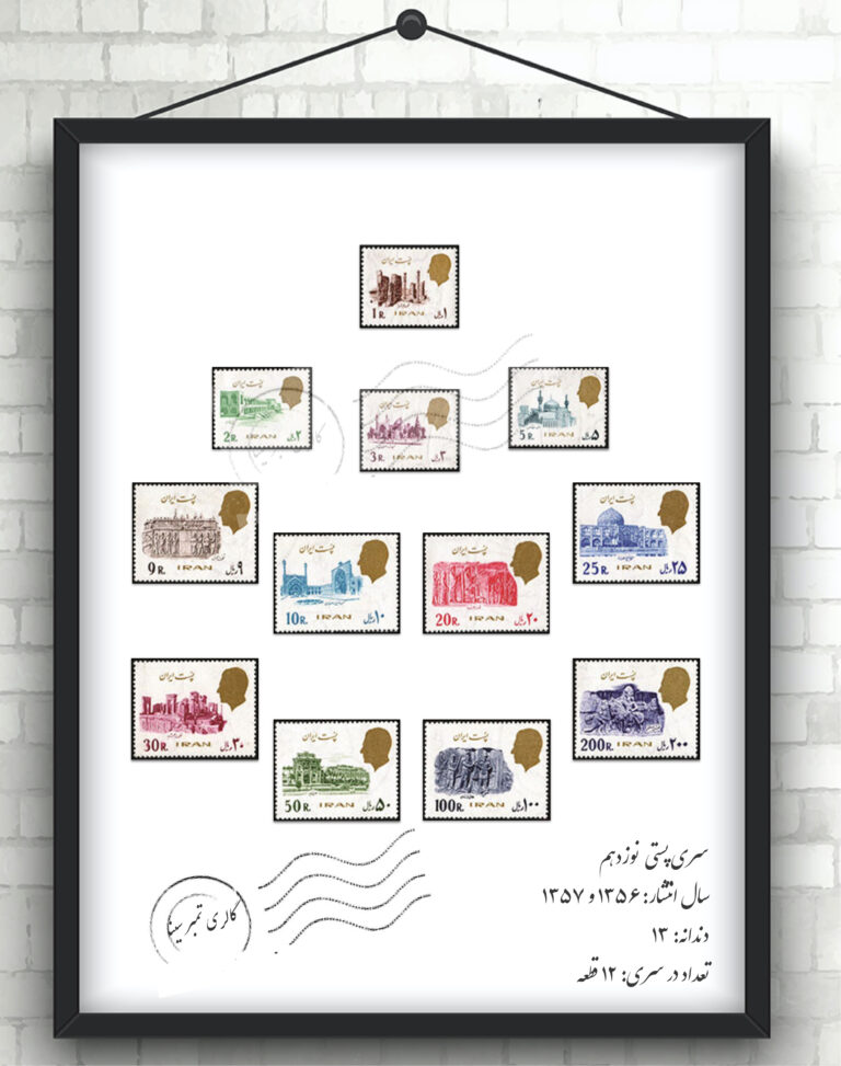 تمبرها را آنطور که در ذهن میبینیم کنار هم میچینیم. دور آن قابی میگذارم تا زیبایی آنها جلوه کند و چیز دیگری آنرا پوشش ندهد. از زاویه دید من تمبرها را ببینید.